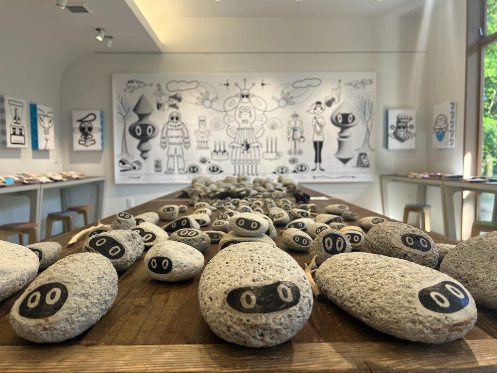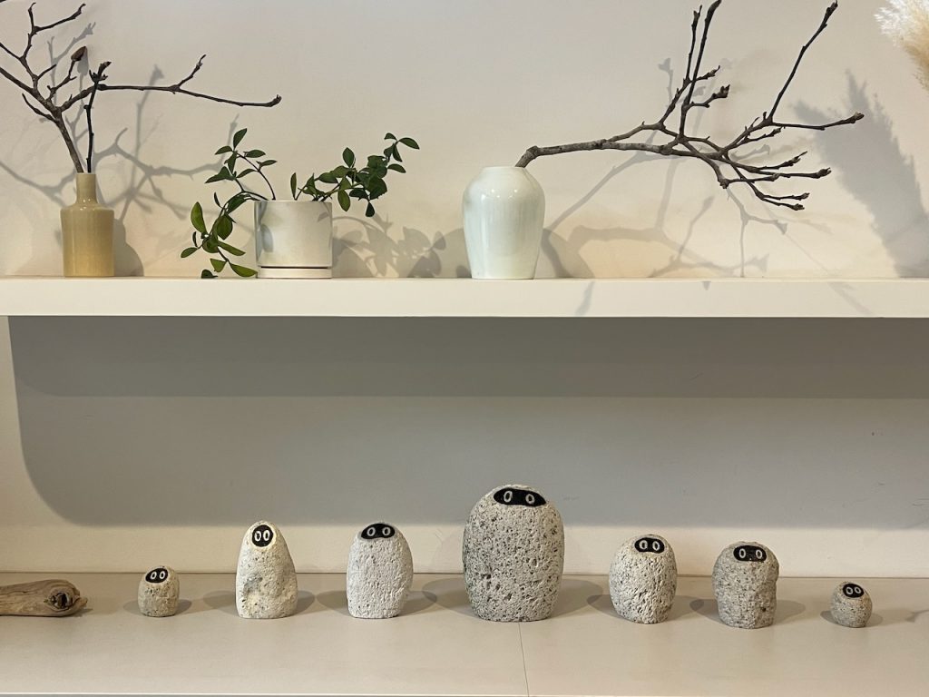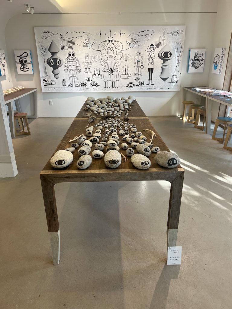 日置市美山にある「cocoNotsu:ここのつ」内のギャラリー「isado」で展覧会を開く機会に恵まれました。「美山ビエンナーレ 0(ゼロ)・始まりの景色」という一大イベント。薩摩焼の郷として古くから文化的な香りが漂う、日置市の中では代表的な地域です。「石について001」でお伝えしたU.F.O.STONEを中央のテーブルに設置、壁面には平面作品を展示。軽石から発せられる太古からのメッセージとTESCREALと呼ばれる未来思考を繋ぐコンセプトでした。